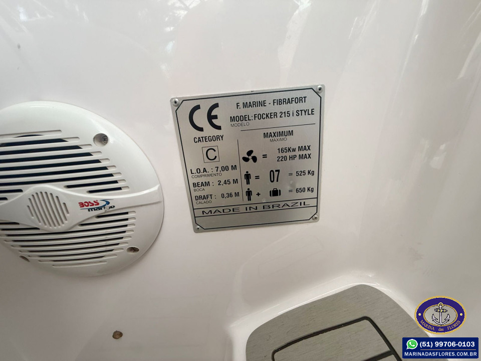 | Acessórios: | - Âncora Manual - Targa em Inox - Teka nova - Sonda - Som - Carreta de encalhe |